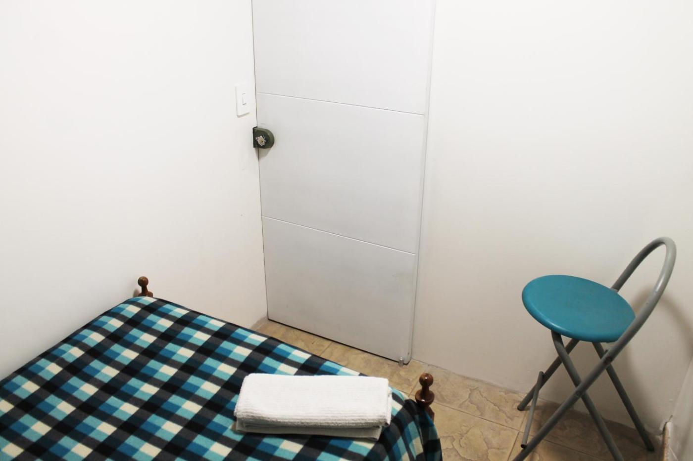Habitación Individual con baño compartido. The single room includes a shared bathroom fitted with a shower. The single room has an outdoor dining area. The unit has 1 bed.